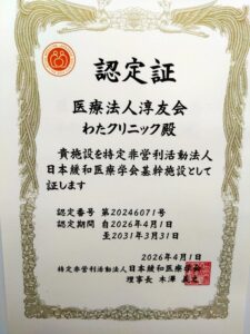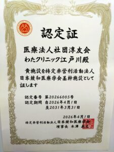 2026年4月1日付でわたクリニック江戸川が特定非営利活動法人 日本緩和医療学会基幹施設 として認定されました。